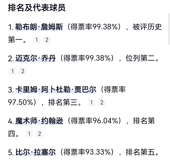 2024年HoopsHype更新的NBA历史78大球星排名中,詹姆斯以99.38%的得票率与乔丹并列,但主编最终判定詹姆斯为历史第一。其评判标准或许已不是单纯的“冠军数量”,而是包括“生涯长度”和“持续影响力”等多元因素!