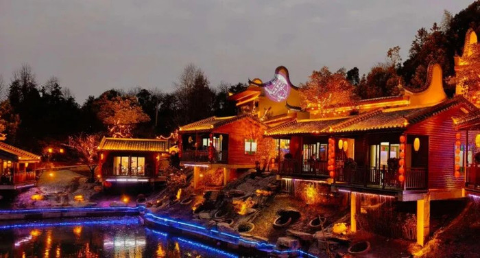 仙庾岭旅游度假区紧扣“文旅+农业”核心发展理念,依循“两山两湖一廊多点”。紫轩明舍文化村坐落于度假区主干道边,是仿明朝风格建筑,占地105亩,其独特的灯光水景设计,让夜晚的度假区更具魅力,成为仙庾夜游的亮点。区域内民宿集群建设成效显著,呈现“市场主体与村民共建”的良好态势。