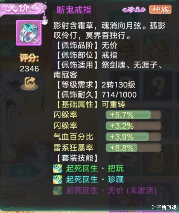 把玩效果直接提供7%加强混乱属性,比旧版“无咎”佩饰10%略低一些,但更注重实战稳定性;珍藏效果打破了控人不控宠的传统瓶颈,无视召唤兽隐身状态太绝了,形如“混乱小霄汉”!