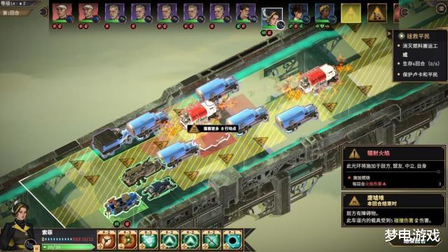 这里补充说明角色的等级成长,角色的科技树基本雷同,由三条同类型走到黑技能倾向的组成。会强行捆绑roll点属性和战斗技能,要到后期点满才看得出配合,类似嘲讽和回血你缺一个都不是合格的肉盾。一开始战斗我在想怎么总是这么多无关路人在道路上,但车毁会产生地形配装伤害,那就只好对不起了,灵活利用碰撞带来的地形收益,比靠武器输出稳定多了。除了boss战难度比较大对失败判定严格,其他战斗相对于轻松,偶尔死一个没事。