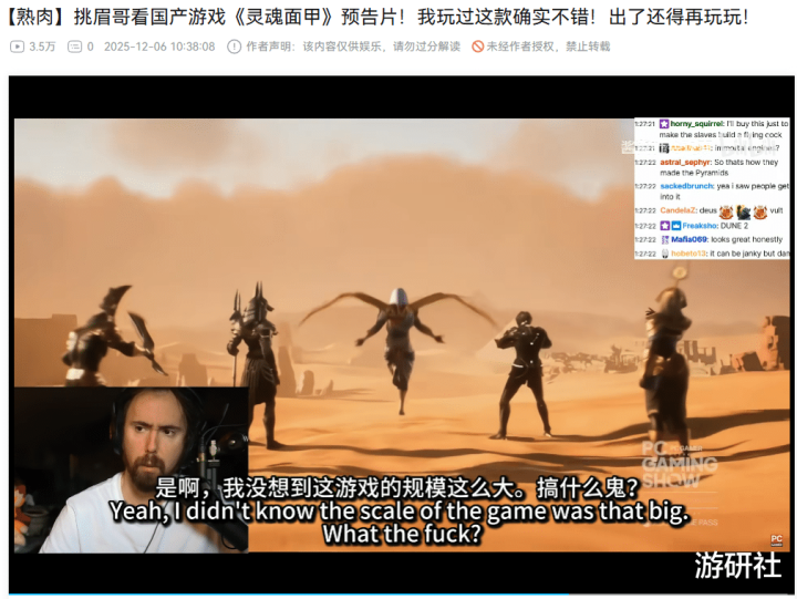 “挑眉哥”Asmongold直播观看《灵魂面甲》最新预告