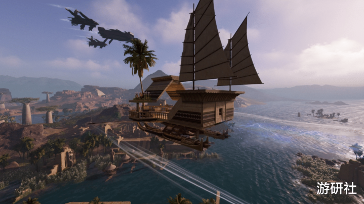 如果要聊1.0和ea阶段最大的区别,只能说当我第一次驾着亲手打造的反重力飞船,载着满船的族人和炉火从金字塔上空呼啸而过时,才真正意识到,《灵魂面甲》已经不再是两年前那个原始丛林生存游戏了。