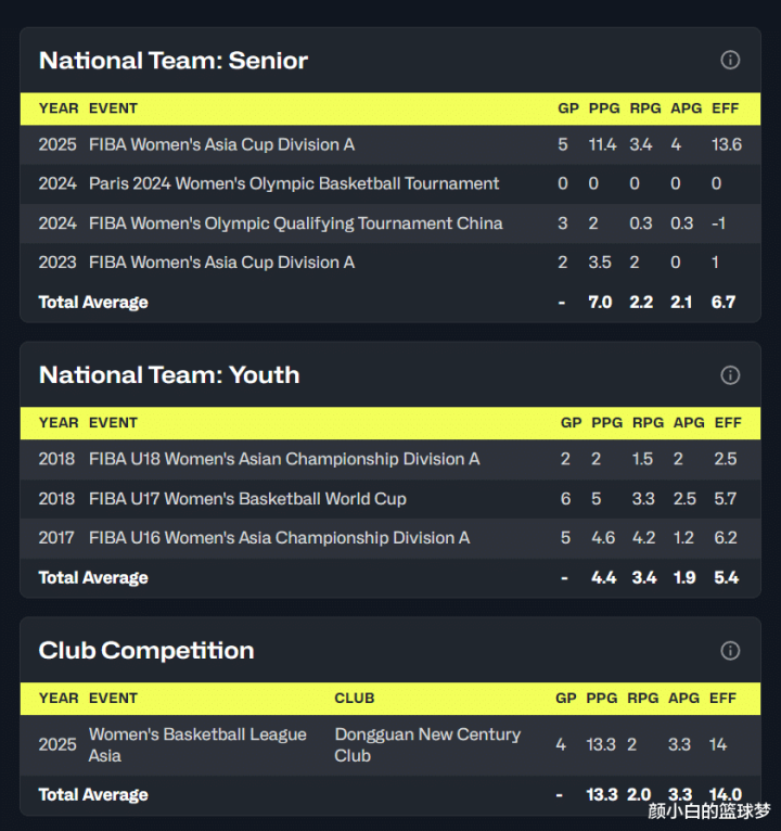 杨舒予在今夏的亚洲杯上场均11.4分3.4篮板4助攻1抢断0.4盖帽,命中率51.2%,三分命中率31.6%。宫鲁鸣最新一期的女篮集训队热身赛两场场均18.5分5助攻,她已经成为中国女篮外线的第一核心,95后已经逐渐淡出主力的阶段。#2025新星计划3期#