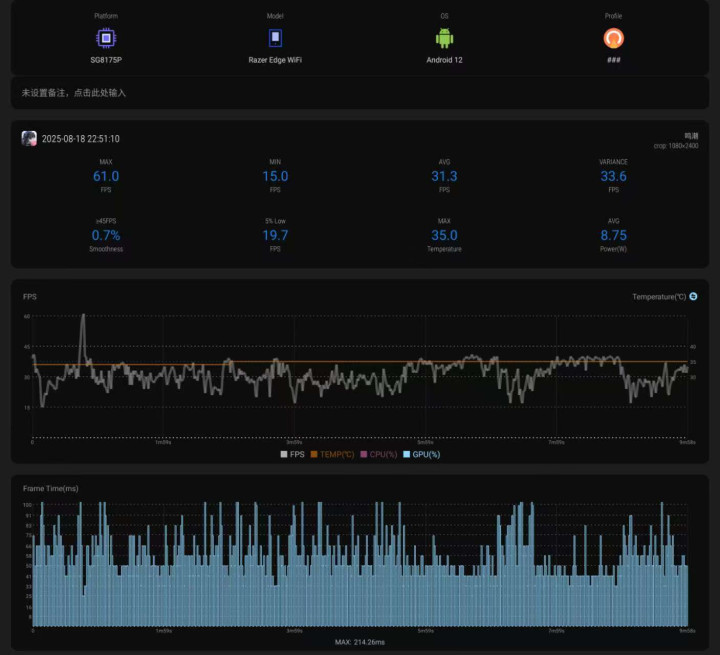 很显然,Razer Edge本身的主动散热策略有问题,尽管有风扇辅助散热,依然没有完全发挥出G3x Gen 1的理论性能。如果想要获得更好的体验,要么需要降低画质,要么就得上个散热背夹了。