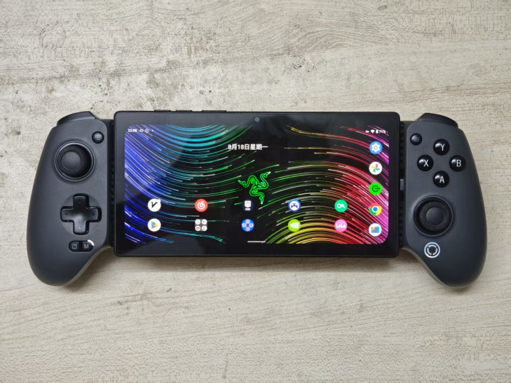 我将它与我日常使用的联想拯救者G7手柄进行了组合。得益于G7强大的拉伸结构和居中的Type-C接口,Razer Edge被完美地夹持住,两者合体后严丝合缝,仿佛原厂设计一般,重量也恰到好处,长时间游玩也不会感到疲劳。